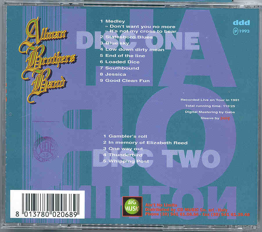 Allman Brothers Band – All or Nothing ( 2 CD SET ) ( Big Music ) ( Live on Tour 1991 )