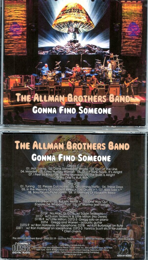 Allman Brothers Gonna Find Someone 3 CD SET Beacon Theatre New York City March 19th 2005 Allman Brothers Gonna Find Someone ( 3 CD SET ) ( Beacon Theatre, New York City, March 19th, 2005 )