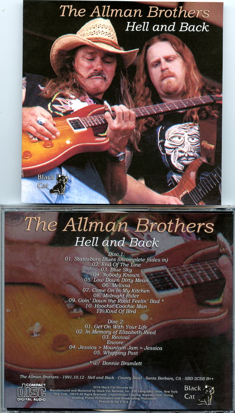 Allman Brothers Hell and Back 2 CD SET County Bowl Santa Barbara CA October 12th 1991 Allman Brothers Hell and Back ( 2 CD SET ) ( County Bowl, Santa Barbara, CA, October 12th, 1991 )