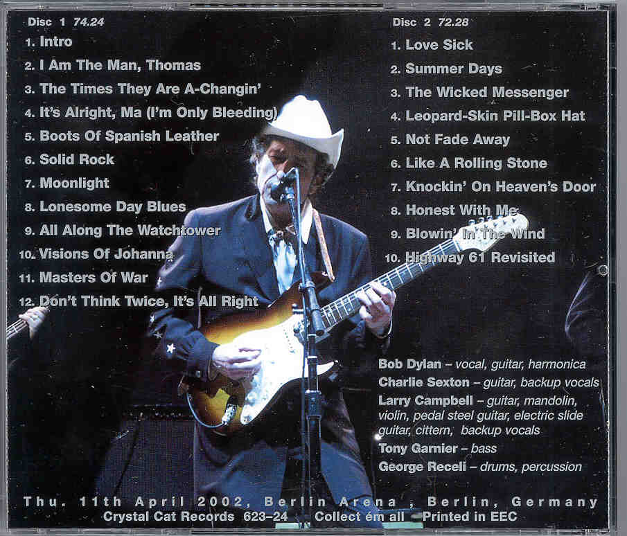 Bob Dylan Berlin 2002 2 CD SET Berlin Arena Berlin Germany April 11th 2002 Bob Dylan Berlin 2002 ( 2 CD SET ) ( Berlin Arena , Berlin , Germany , April 11th , 2002 )