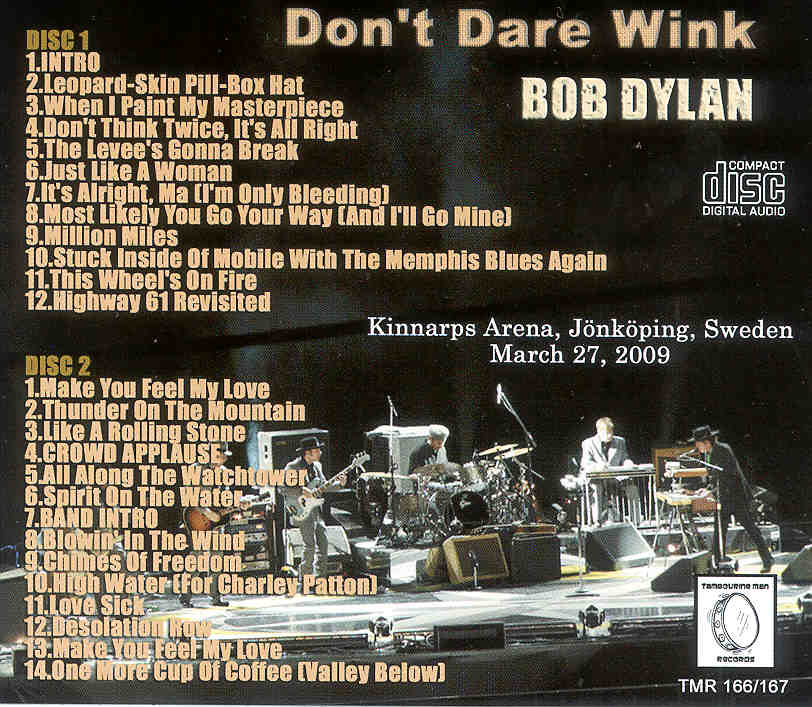 Bob Dylan – Don’t Dare Wink ( 2 cd set ) ( Kinnarps Arena , Jonkoping , Sweden , March 27th , 2009 )