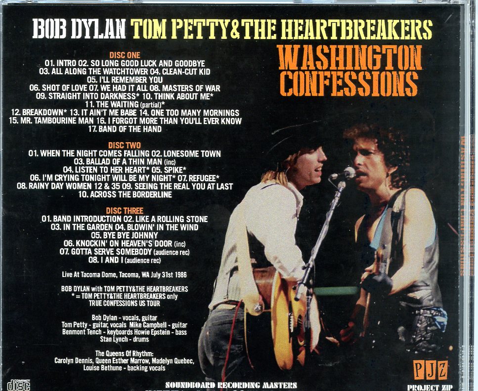 Bob Dylan Washington Confessions 3 CD SET With Tom Petty at Tacoma Dome Tacoma WA USA July 31st 1986 Bob Dylan Washington Confessions ( 3 CD SET ) ( With Tom Petty at Tacoma Dome, Tacoma, WA, USA, July 31st, 1986 )