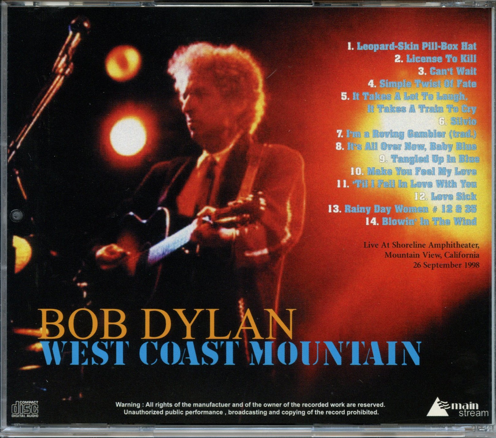 Bob Dylan West Coast Mountain Main Stream Live at Shoreline Amphitheater Mountain View California USA September 26th 1998 Bob Dylan West Coast Mountain ( Main Stream ) ( Live at Shoreline Amphitheater, Mountain View, California, USA, September 26th, 1998 )