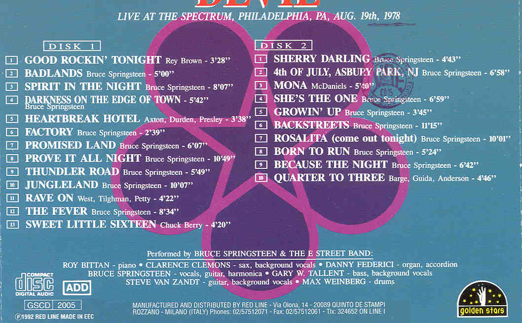 Bruce Springsteen – The Jersey Devil ( 2 cd set ) ( Live at The Spectrum , Philadelphia , PA , August 19th , 1978 )
