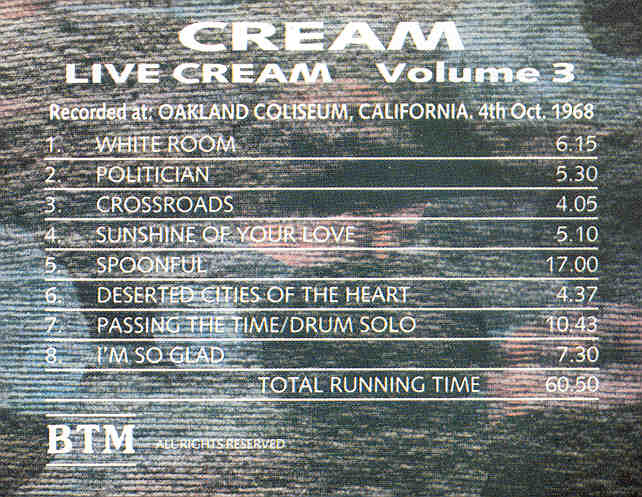 Cream Live Cream Volume 3 Oakland Coliseum California October 4th 1968 Cream Live Cream Volume 3 ( Oakland Coliseum , California , October 4th , 1968 )