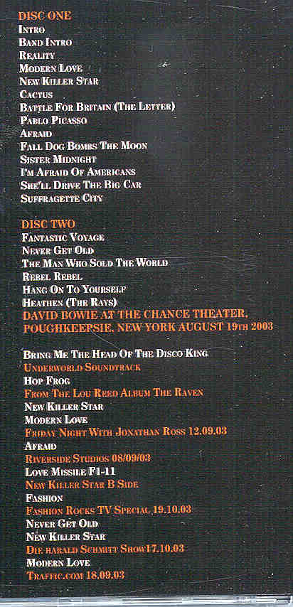 David Bowie – A Reality Check ( 2 cd set ) ( Chance Theater , Poughkeepsie , New York , August 19th , 2002 )