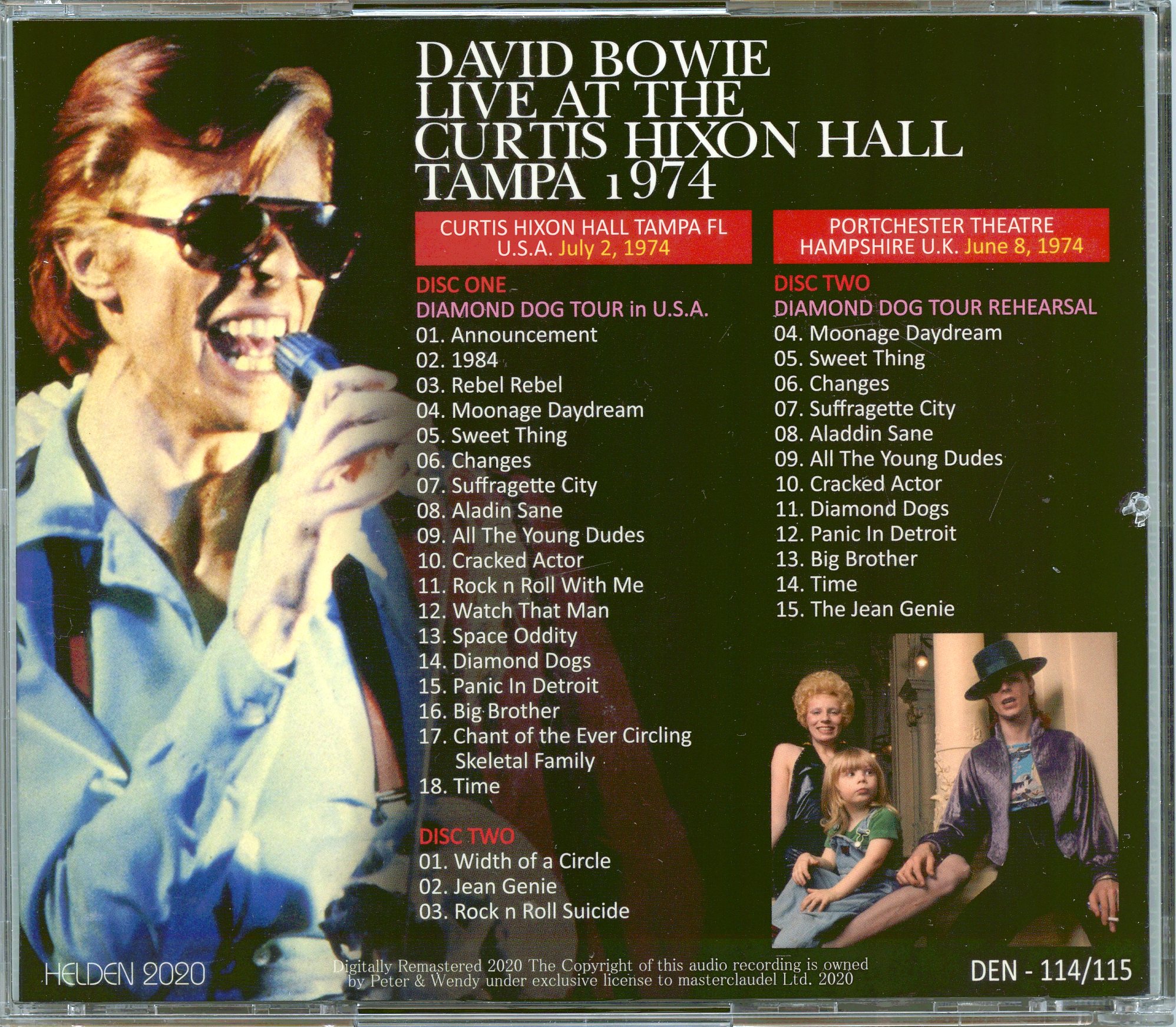 DAVID BOWIE At The Curtis Hixon Hall 2 cd HELDEN Tampa FL USA July 2nd 1974 + Hampshire UK June 8th 1974 DAVIDBOWIE At The Curtis Hixon Hall ( 2 cd ) ( HELDEN ) ( Tampa, FL, USA, July 2nd, 1974 + Hampshire, UK, June 8th 1974 )