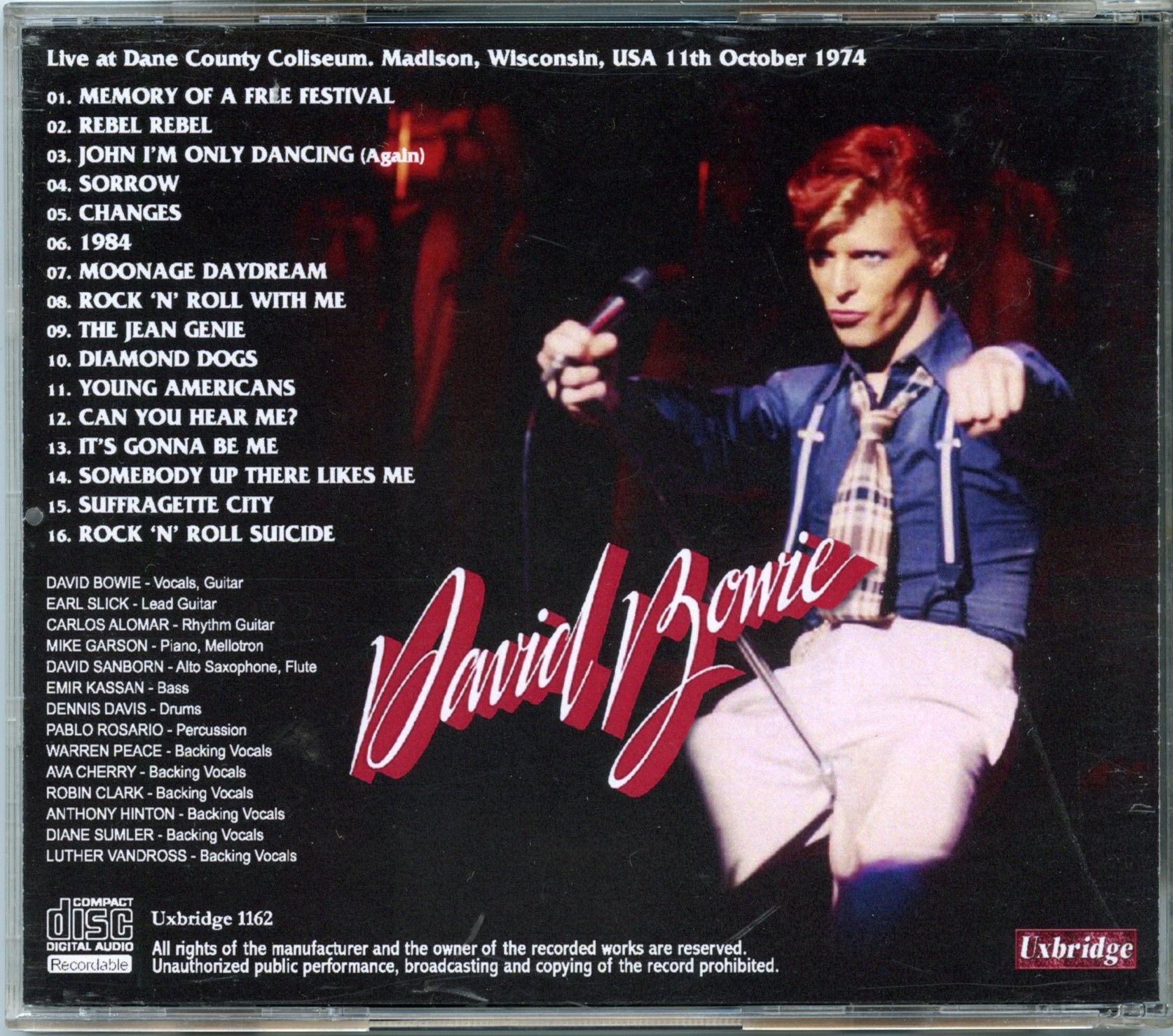DAVID BOWIE – Madison 1974 2nd Night ( Uxbridge ) ( Dane County Coliseum, Madison, WI, USA, October 11th, 1974 )