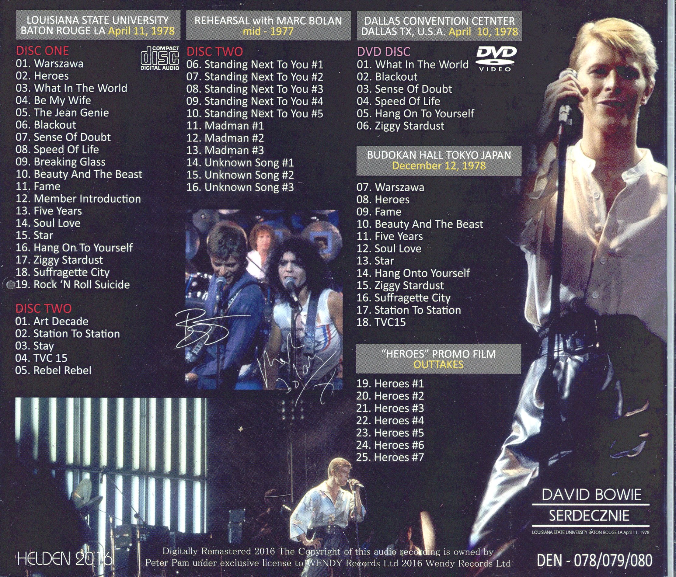 DAVID BOWIE Serdecznie 2 CD 1 DVD HELDEN Louisiana State University Baton Rouge LA April 11th 1978 DAVIDBOWIE Serdecznie ( 2 CD 1 DVD ) ( HELDEN ) ( Louisiana State University Baton Rouge, LA, April 11th, 1978 )