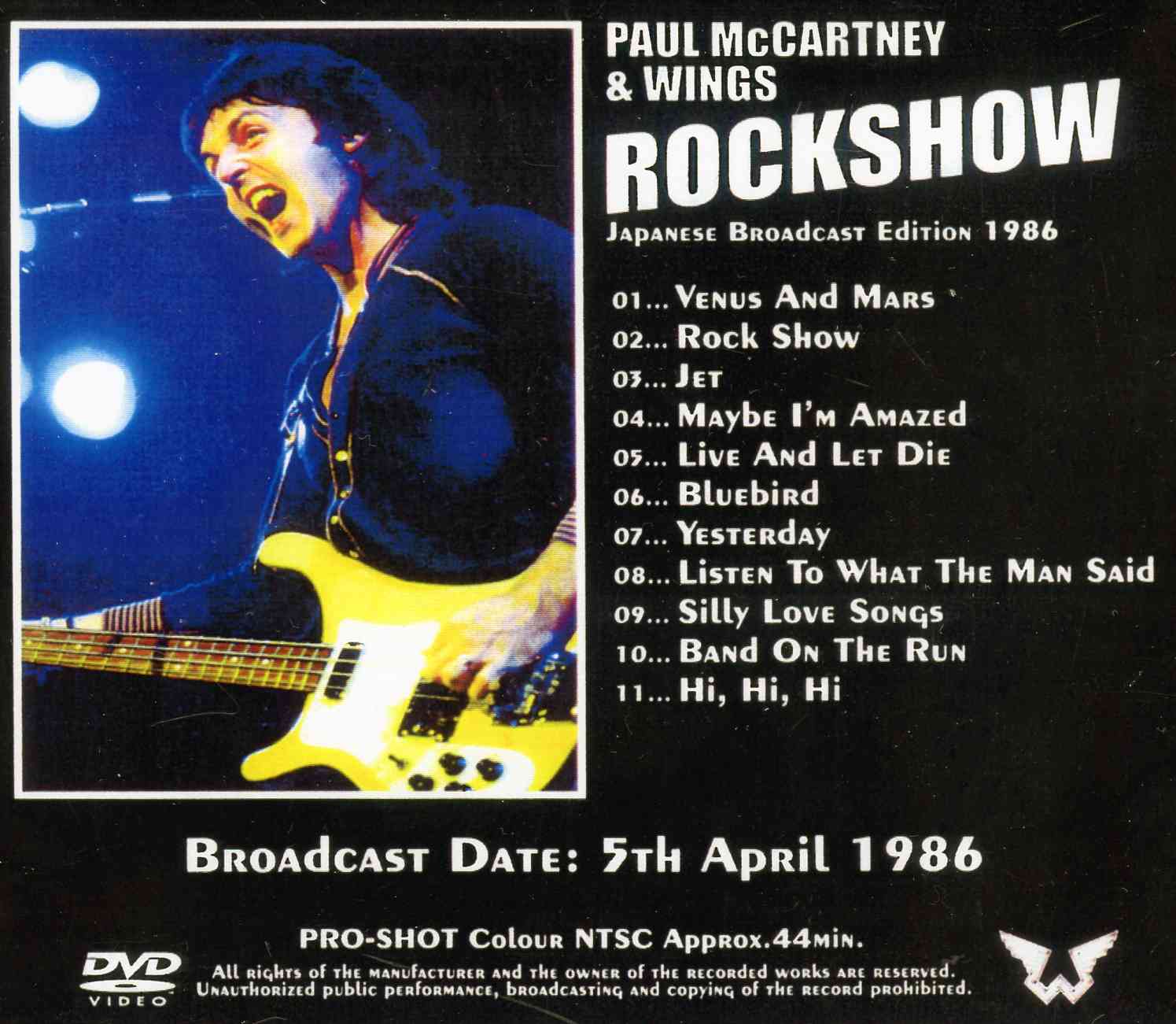 DVD Paul McCartney Rockshow Japanese Broadcast Edition 1986 DVD Paul McCartney Rockshow ( Japanese Broadcast Edition 1986 )