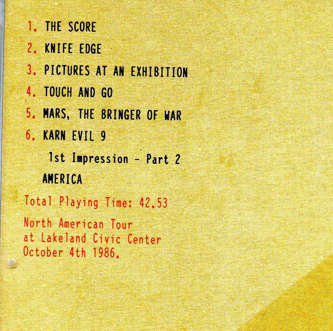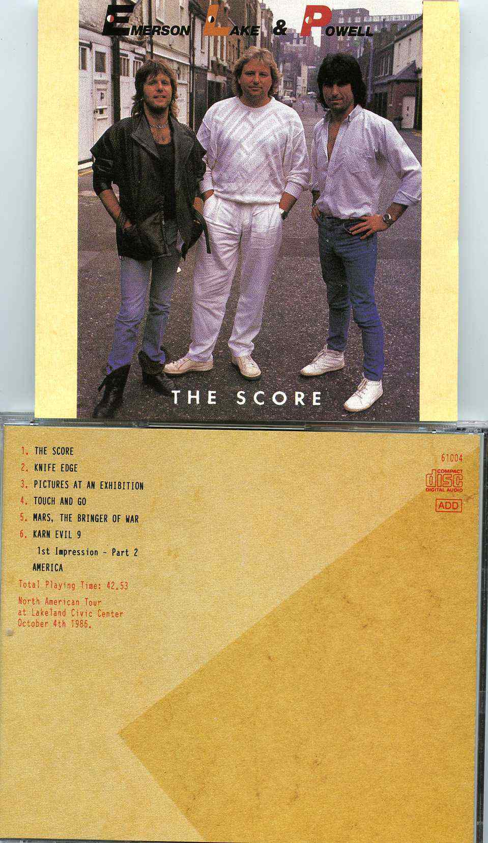 Emerson Lake And Palmer The Score Emerson Lake And Powell Live at the Lakeland Civic Center October 4th 1986 Emerson , Lake And Palmer The Score ( Emerson Lake And Powell Live at the Lakeland Civic Center , October 4th , 1986 )