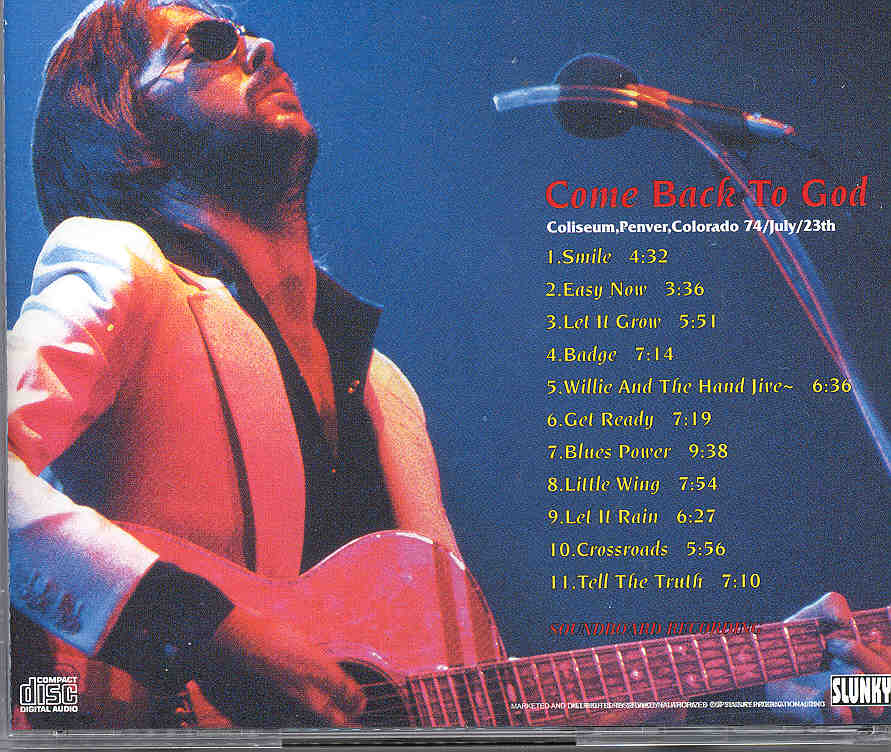 Eric Clapton Come Back To God Coliseum Denver Colorado July 23rd 1974 Slunky Eric Clapton Come Back To God ( Coliseum , Denver , Colorado , July 23rd , 1974 ) ( Slunky )