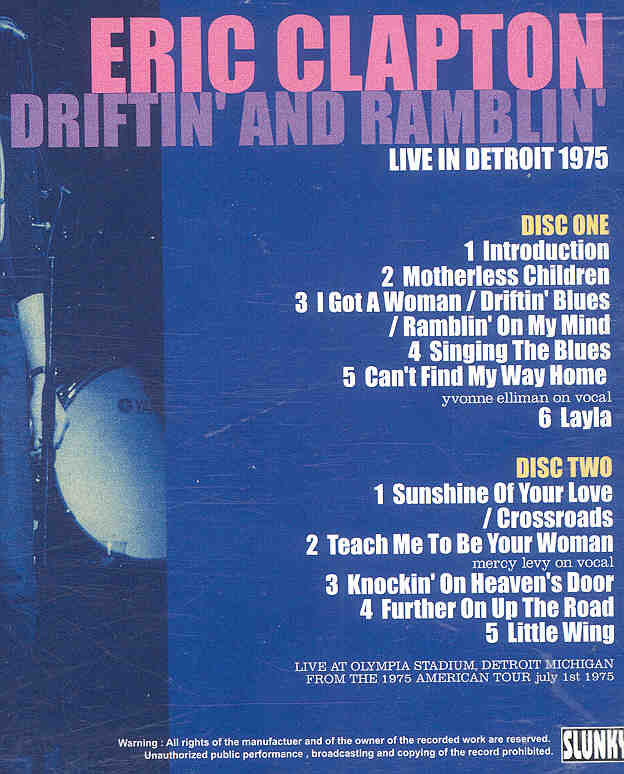 Eric Clapton – Drifting And Rambling ( 2 cd set ) ( Live In Detroit , Michigan , USA , July 1st , 1975 ) ( Slunky )