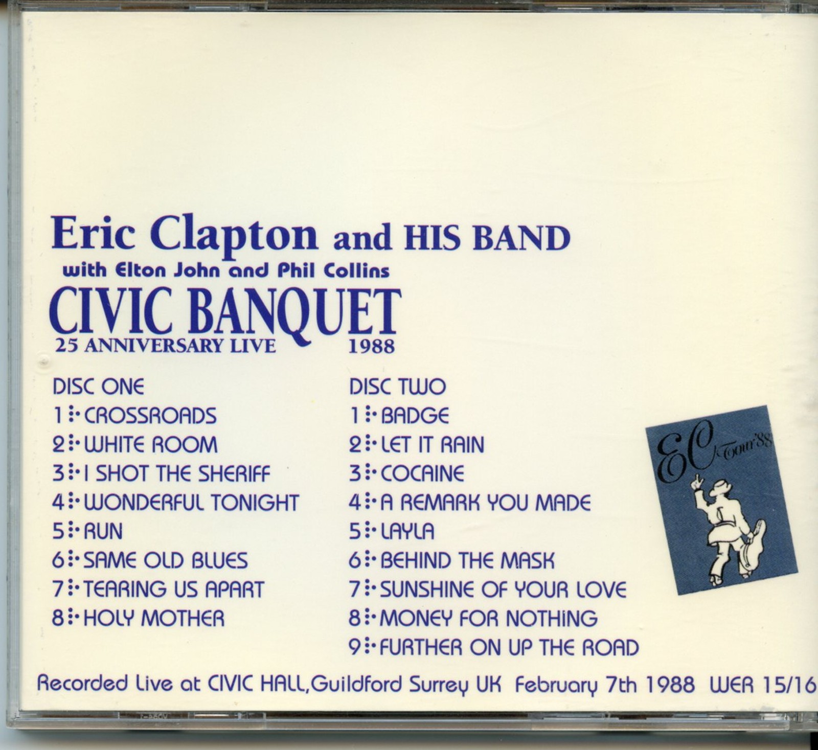Eric Clapton – Eric Clapton – Civic Banquet ( 2 CD SET ) ( With Elton John & Phil Collins at Civic Hall, Guildford, Surrey, UK, Feb. 7th, 1988 )