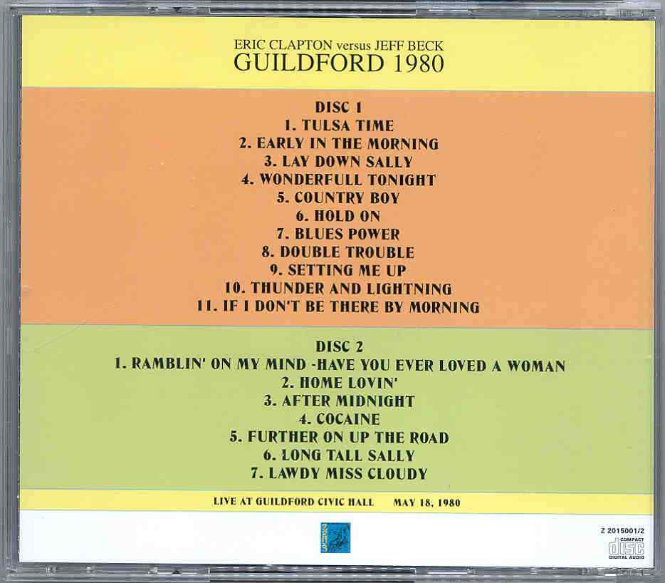 Eric Clapton Eric Clapton Versus Jeff Beck Guildford 1980 2 CD set May 18th 1980 Eric Clapton Eric Clapton Versus Jeff BeckGuildford 1980 ( 2 CD set ) ( May 18th , 1980 )