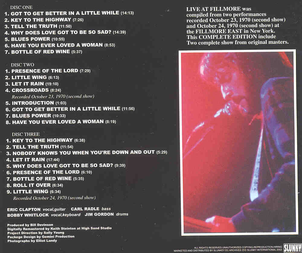 Eric Clapton – Live At The Fillmore Complete ( 3 cd set ) ( Derek At The Dominoes at Fillmore East , Oct 23rd & 24th , 1970 ) ( Slunky )