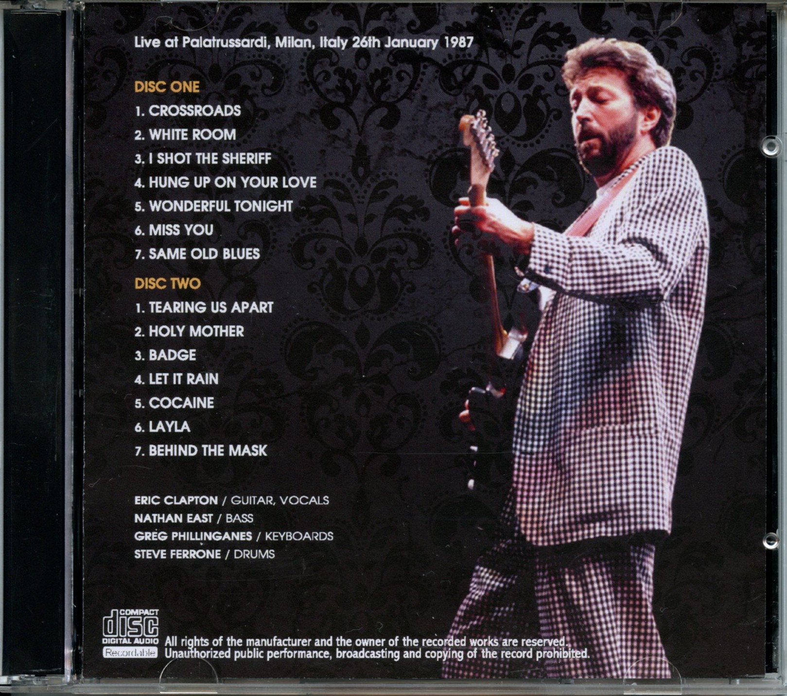 Eric Clapton Milan 1987 2 CD Live at Palatrussardi Milan Italy January 26th 1987 Eric Clapton Milan 1987 ( 2 CD ) ( Live at Palatrussardi, Milan, Italy, January 26th, 1987 )
