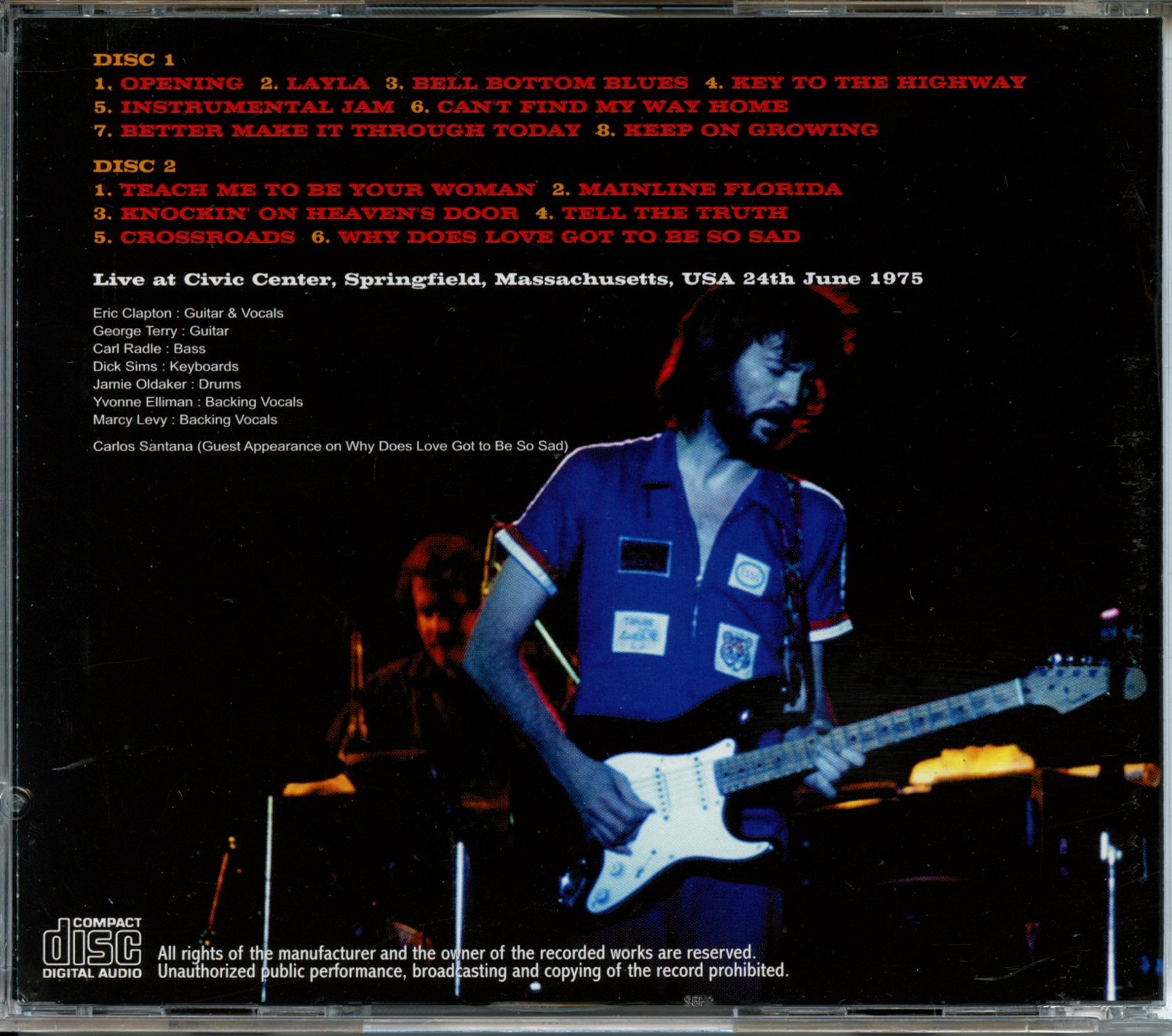 Eric Clapton Springfield 1975 2 CD Live at Civic Center Springfield Massachusetts USA June 24th 1975 Eric Clapton Springfield 1975 ( 2 CD ) ( Live at Civic Center, Springfield,Massachusetts, USA, June 24th, 1975 )