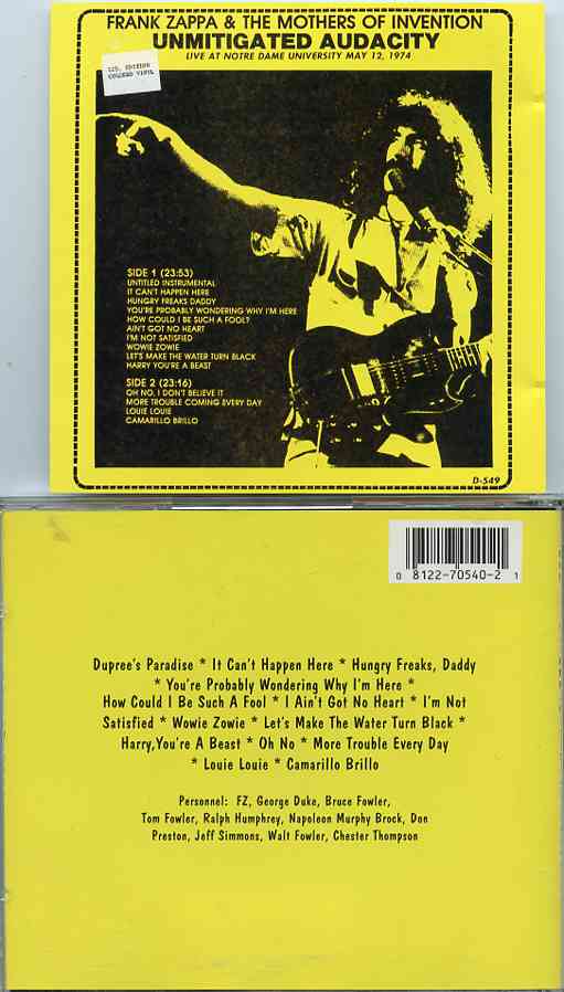 Frank Zappa Unmitigated Audacity Notre Dame University May 12th 1974 Frank Zappa Unmitigated Audacity ( Notre Dame University , May 12th , 1974 )