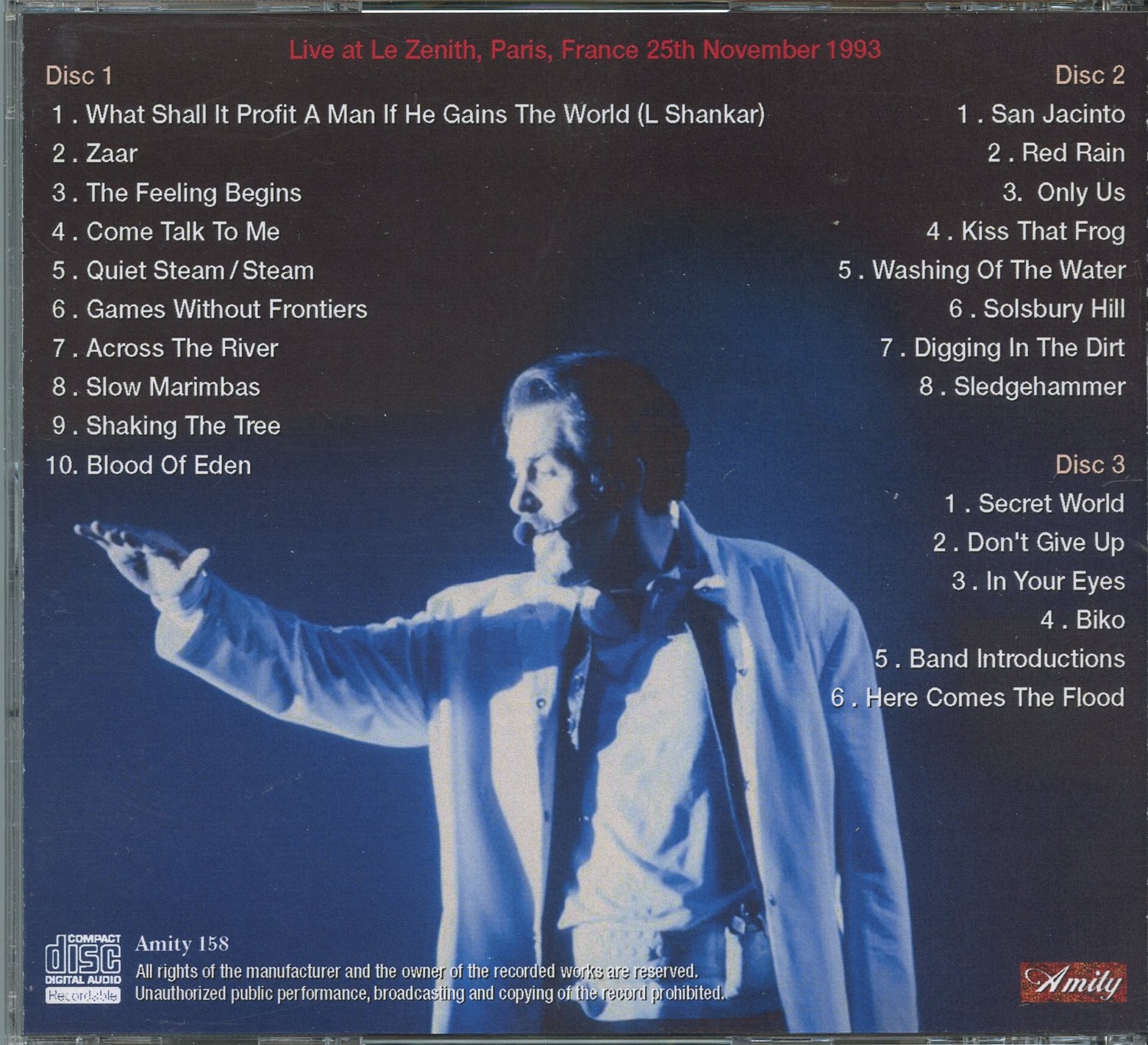 Genesis Peter Gabriel – The Last Secret World ( 3 CD SET ) ( Amity ) ( Le Zenith, Paris, France, November 25th, 1993 )