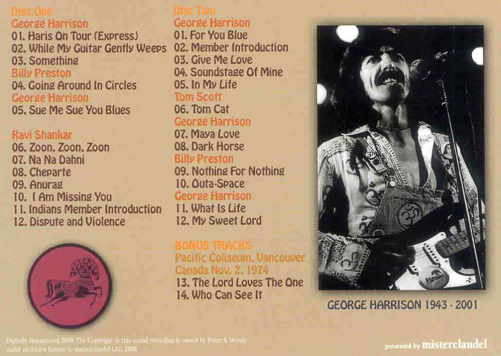 George Harrison 01. For You Blue 02. Member Introduction 03. Give Me Love 04. Soundstage Of Mine 05. In My Life Tom Scott 06. Tom Cat George Harrison OZ. Man Love 08. Dark Horse 09. Nothing For Nothing 10. Outa-Space Georqi, Harrison 11. What Is Life 12. My Sweet Lord