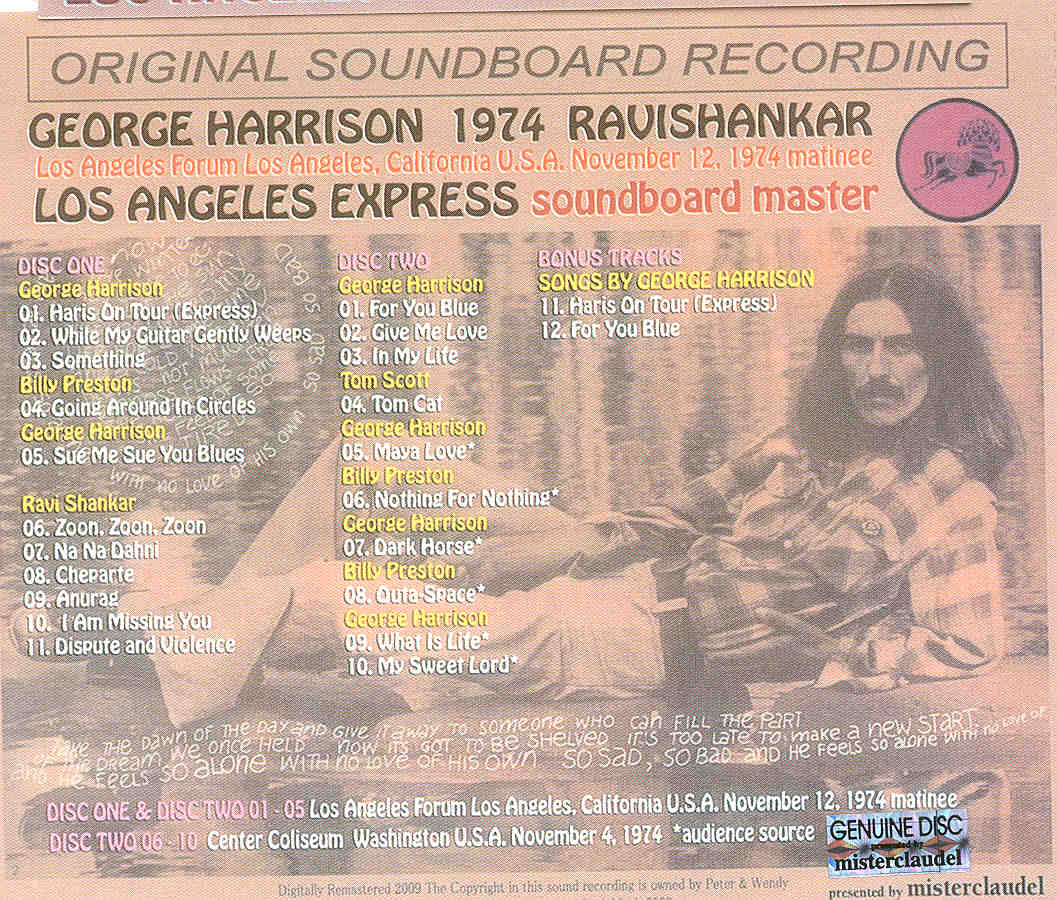 George Harrison – Los Angeles Express Soundboard Master ( Misterclaudel )( 2 CD SET ) ( Nov 12th , 1974 Matinee Show )