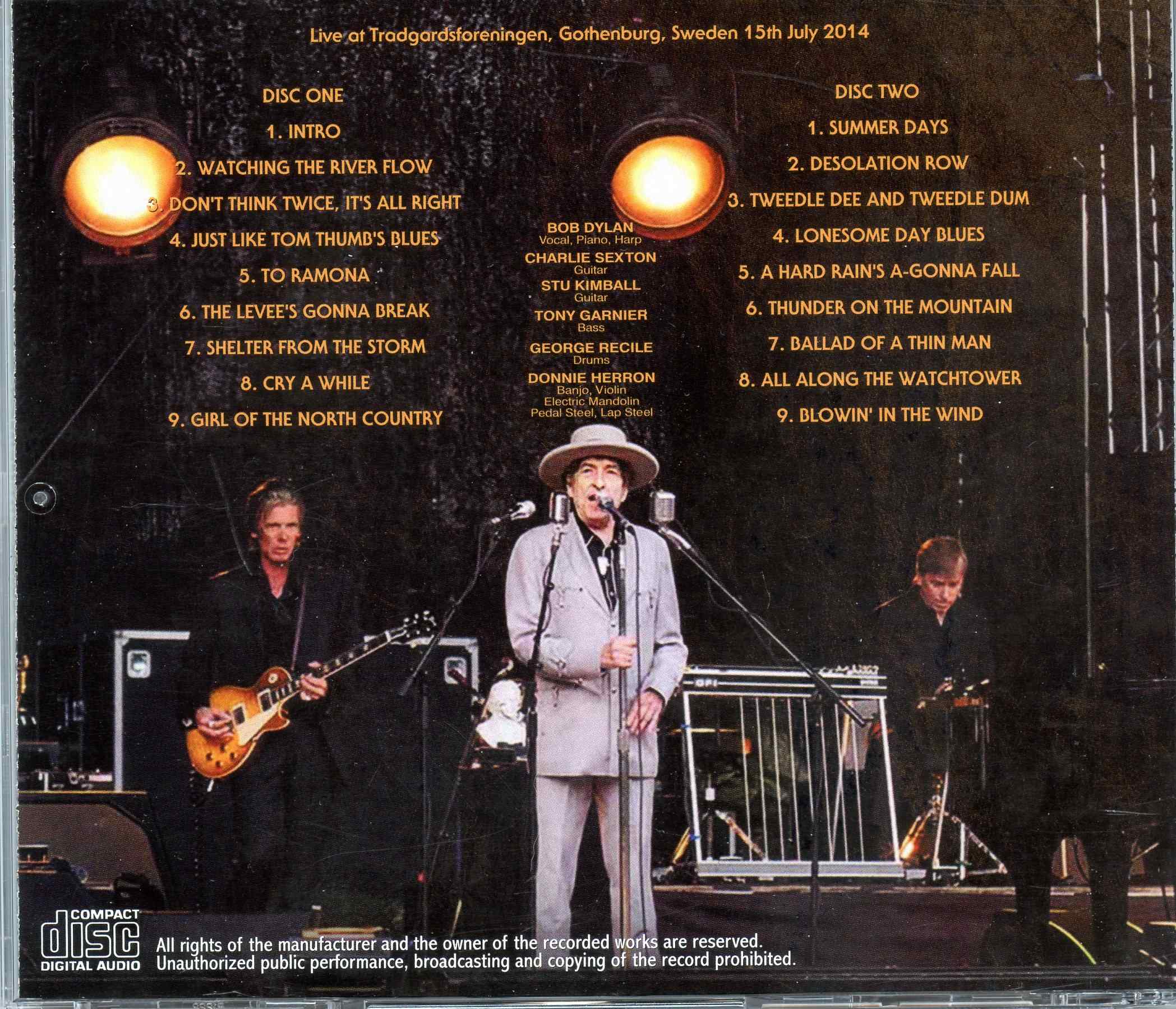 Bob Dylan Gothemburg 2014 2 CD SET Live at Tradgardsforeningen Gothemburg Sweden July 15th 2014 Bob Dylan Gothemburg 2014 ( 2 CD SET ) ( Live at Tradgardsforeningen , Gothemburg , Sweden , July 15th 2014 )