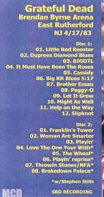 Grateful Dead Brendan Byrne Arena East Rutherford NJ 4/17/83