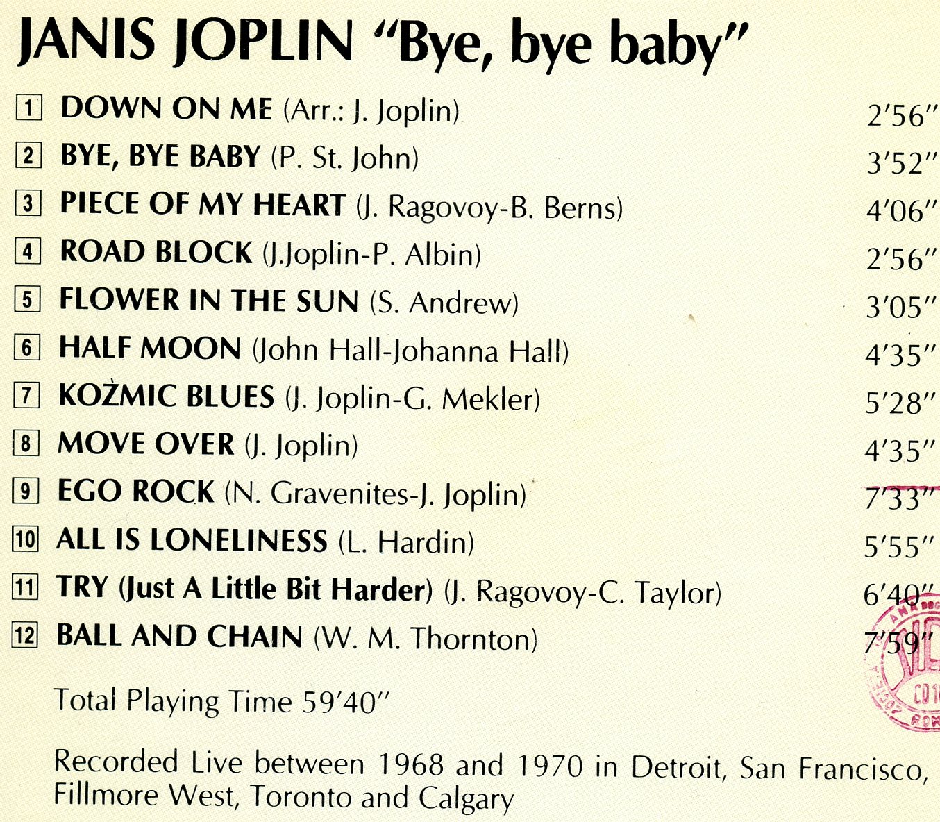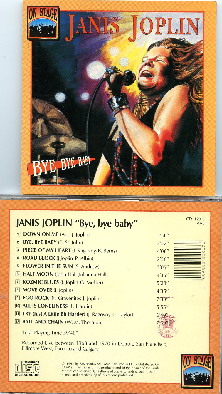 Janis Joplin Bye Bye Baby On Stage Recs Live in Detroit San Francisco Fillmore West Toronto & Calgary 1968 1970 Janis Joplin Bye Bye Baby ( On Stage Recs )( Live in Detroit , San Francisco , Fillmore West , Toronto & Calgary 1968-1970 )