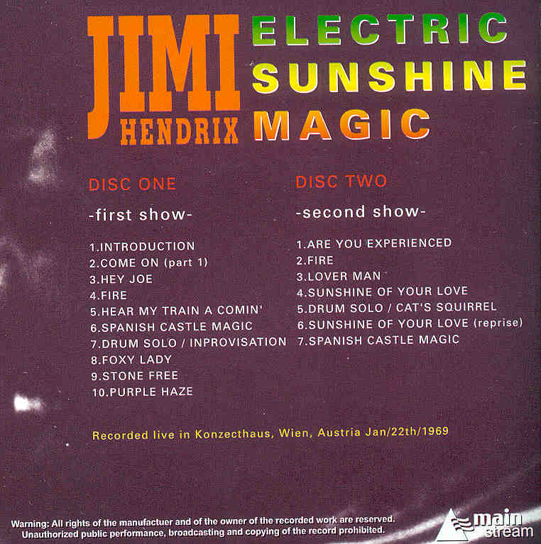 Jimi Hendrix – Electric Sunshine Magic ( 2 CD SET ) ( Live at Konzecthaus , Wien , Austria , January 22nd , 1969 )