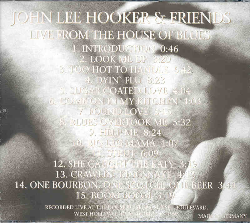 John Lee Hooker Live from The House Of Blues Hollywood CA USA 1995 John Lee Hooker Live from The House Of Blues ( Hollywood , CA , USA , 1995 )