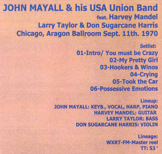 John Mayall Chicago Aragon Ballroom September 11th 1970 John Mayall Chicago , Aragon Ballroom , September 11th , 1970