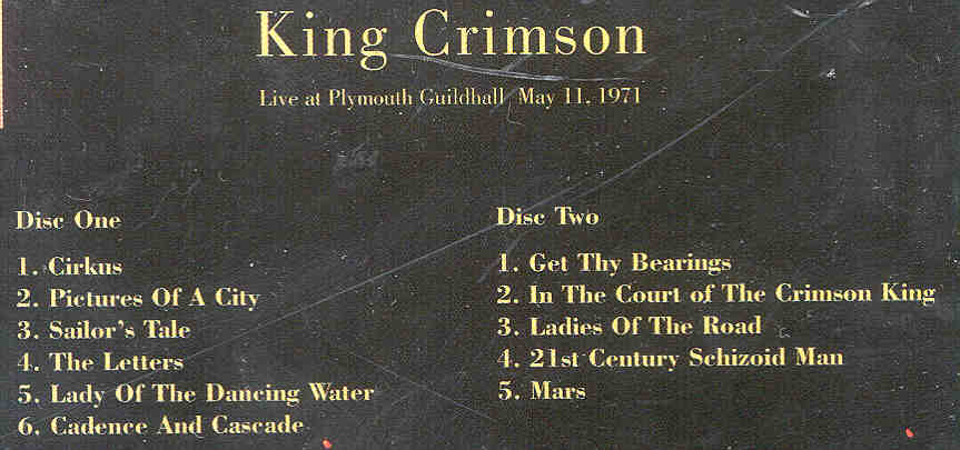 King Crimson Live at Plymouth Guildhall 2 CD SET May 11th 1971 King Crimson Live at Plymouth Guildhall ( 2 CD SET ) ( May 11th , 1971 )