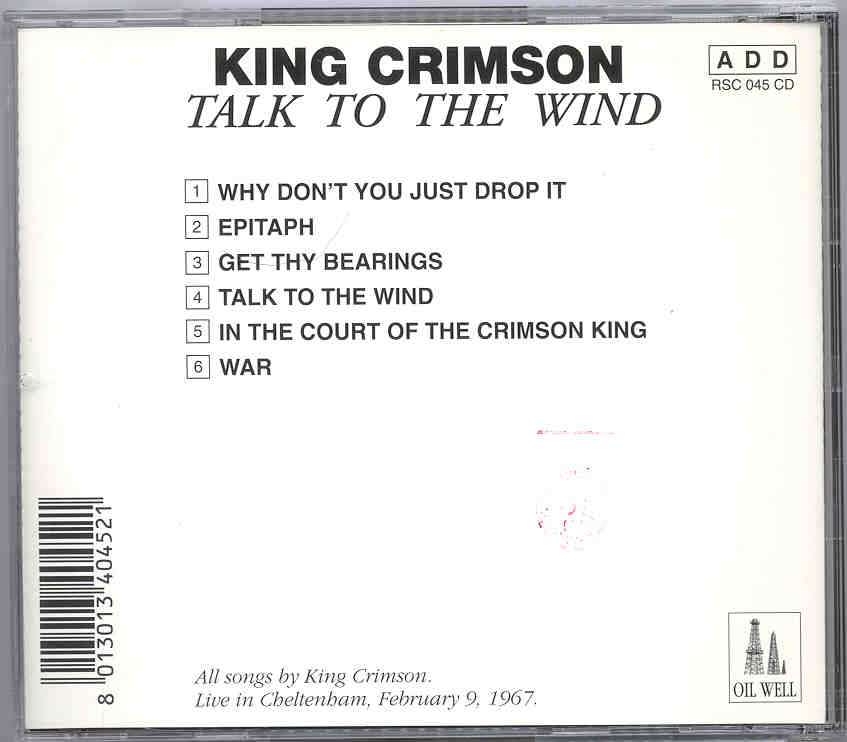King Crimson Talk To The Wind Oil Well Cheltenbam Feb 9th 1967 King Crimson Talk To The Wind ( Oil Well ) ( Cheltenbam , Feb 9th , 1967 )