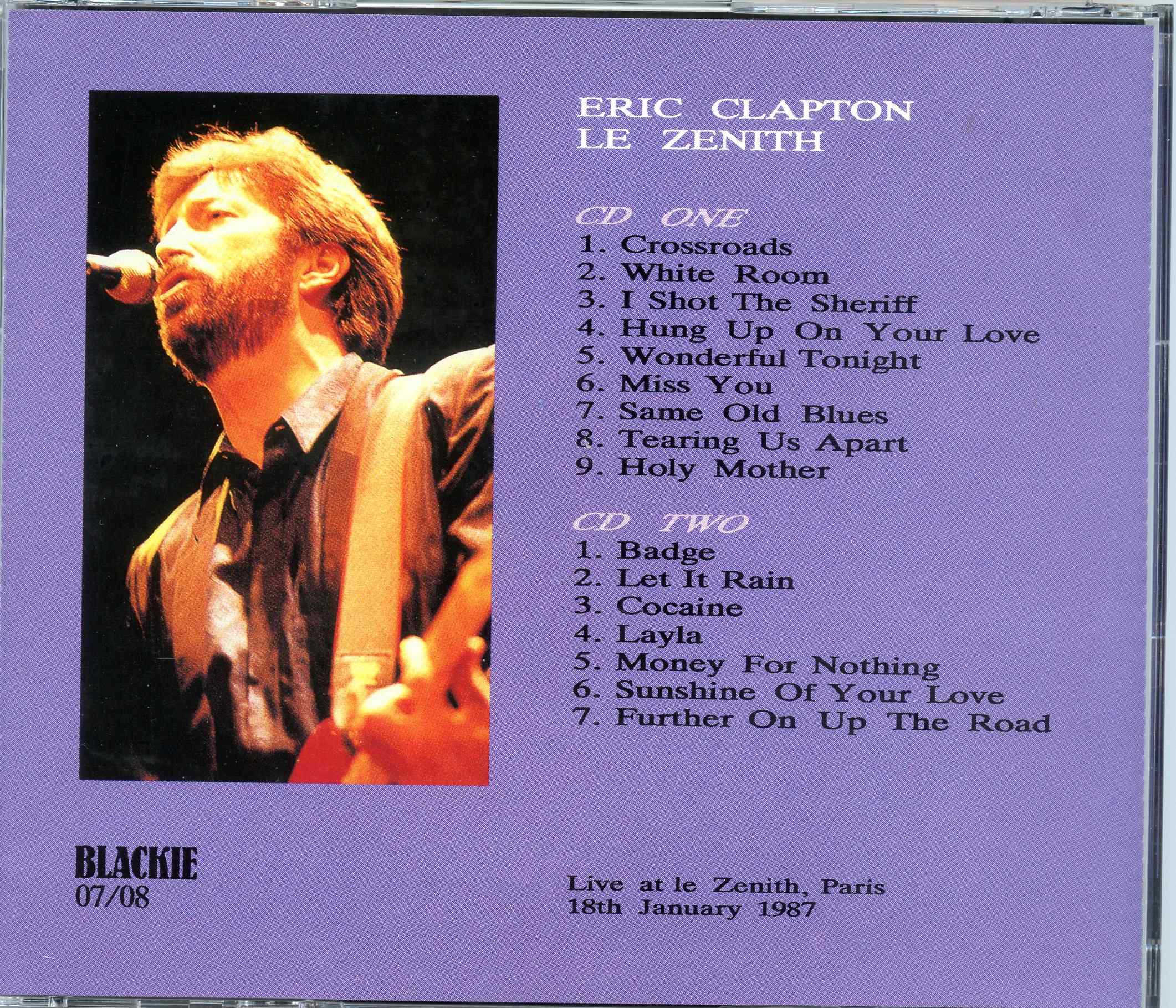 Eric Clapton Le Zenith 2 CD SET Blackie Le Zenith Paris France January 18th 1987 Eric Clapton Le Zenith ( 2 CD SET ) ( Blackie ) ( Le Zenith , Paris , France , January 18th , 1987 )