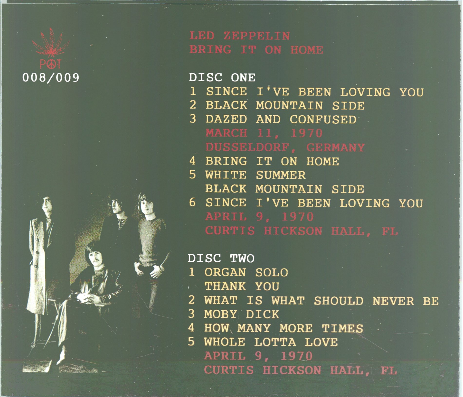 Led Zeppelin Bring it on Home 2 CD SET Dusseldrof Germany March 11 1970 & Curtis Hickson Hall Florida April 9 1970 Led Zeppelin Bring it on Home ( 2 CD SET ) ( Dusseldrof, Germany, March 11, 1970 & Curtis Hickson Hall, Florida, April 9, 1970 )