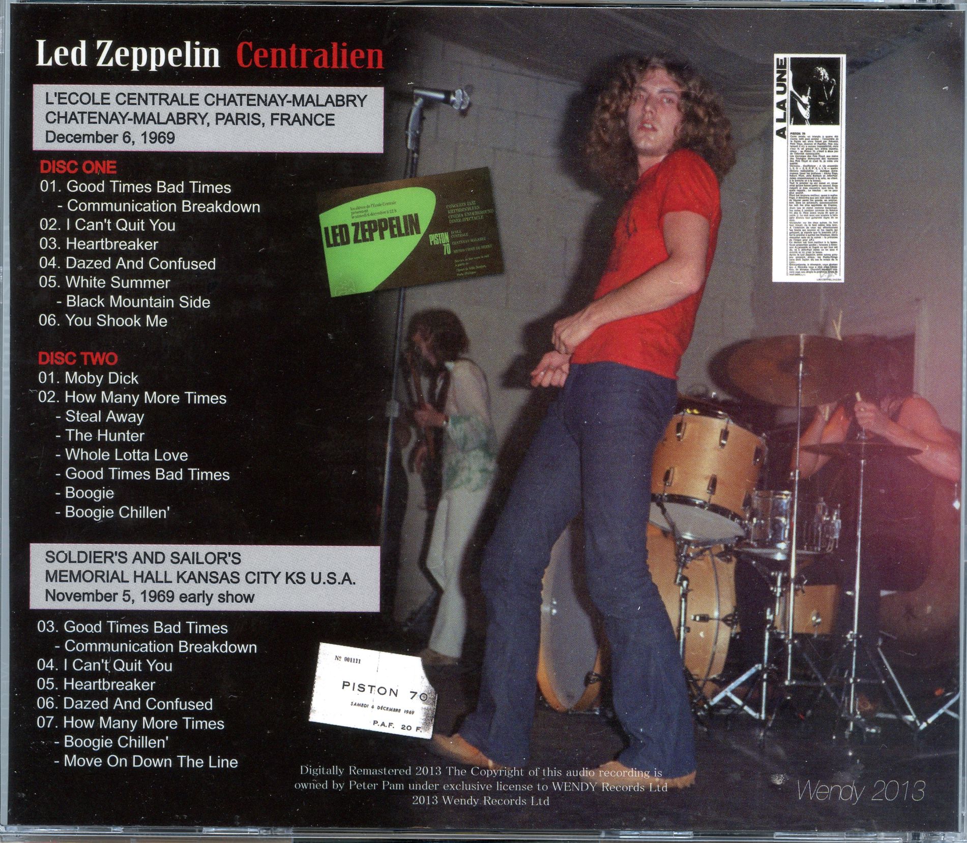 LED ZEPPELIN Centralien 2 CD SET Wendy Paris France December 6th 1969 and Kansas City USA November 5th 1969 LEDZEPPELIN Centralien ( 2 CD SET )( Wendy )( Paris, France, December 6th, 1969 and Kansas City, USA, November 5th, 1969 )
