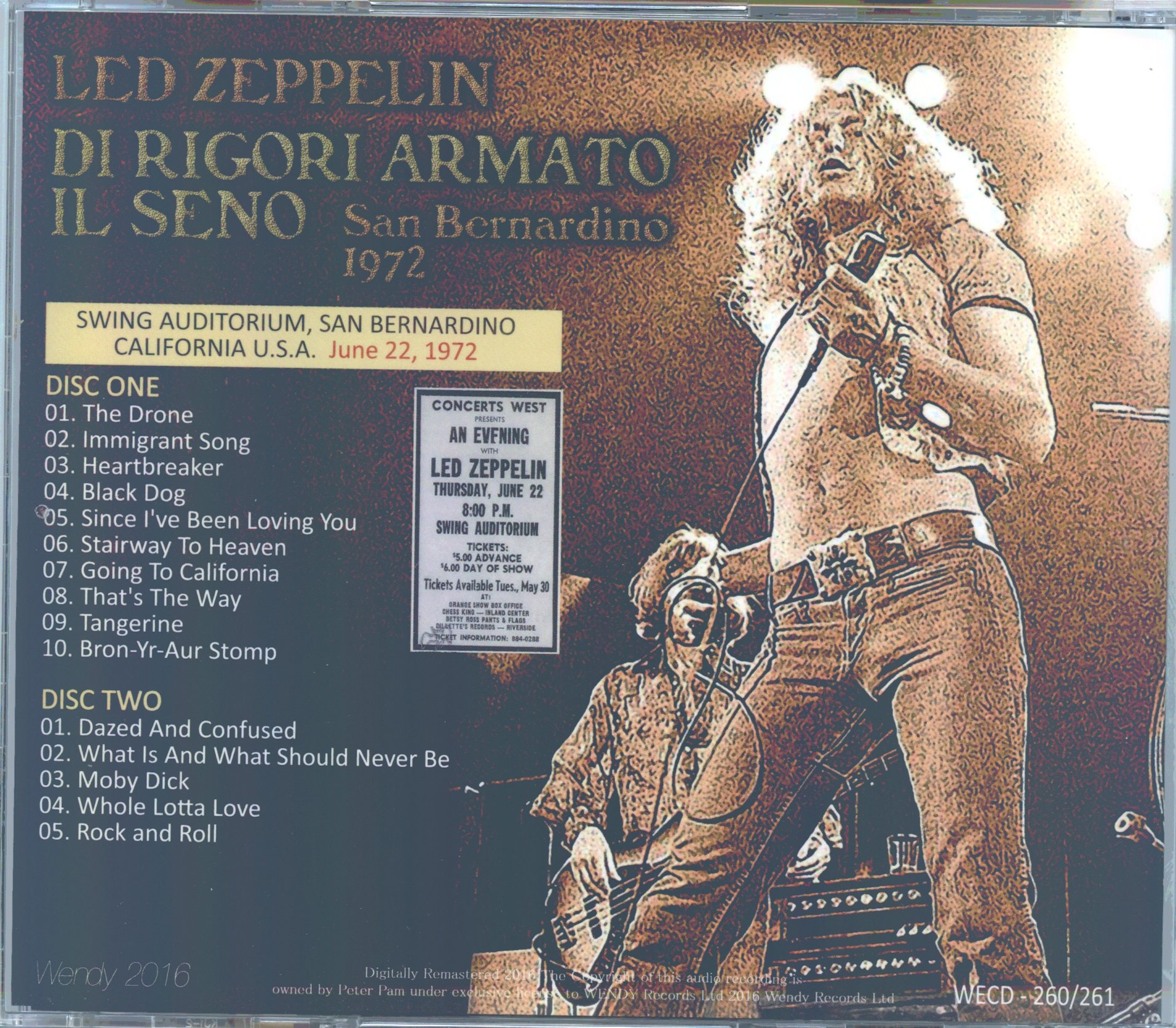 Led Zeppelin Di Rigori Armato Il Seno Wendy Swing Auditorium San Bernardino California USA June 22 1972 Led Zeppelin Di Rigori Armato Il Seno ( Wendy ) ( Swing Auditorium, San Bernardino, California, USA, June 22, 1972 )