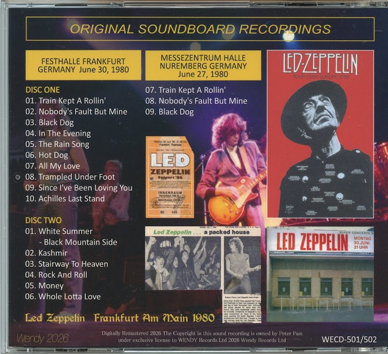 LED ZEPPELIN – Frankfurt AM Main ( 2 CD SET ) ( 2026 WENDY ) ( Festhalle Frankfurt, Germany, June 30th, 1980 plus bonustracks )