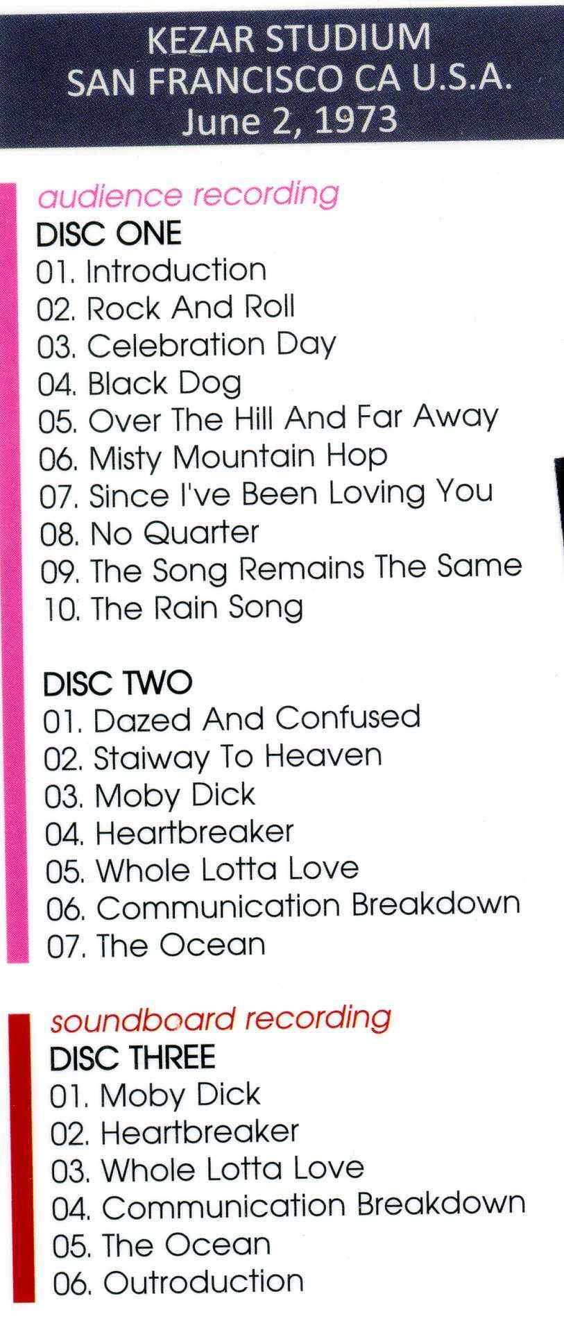 Led Zeppelin – Mary Kezar 1973 ( 3 cd set ) ( Wendy ) ( Kezar Stadium , San Francisco , California , USA , June 2nd , 1973 )