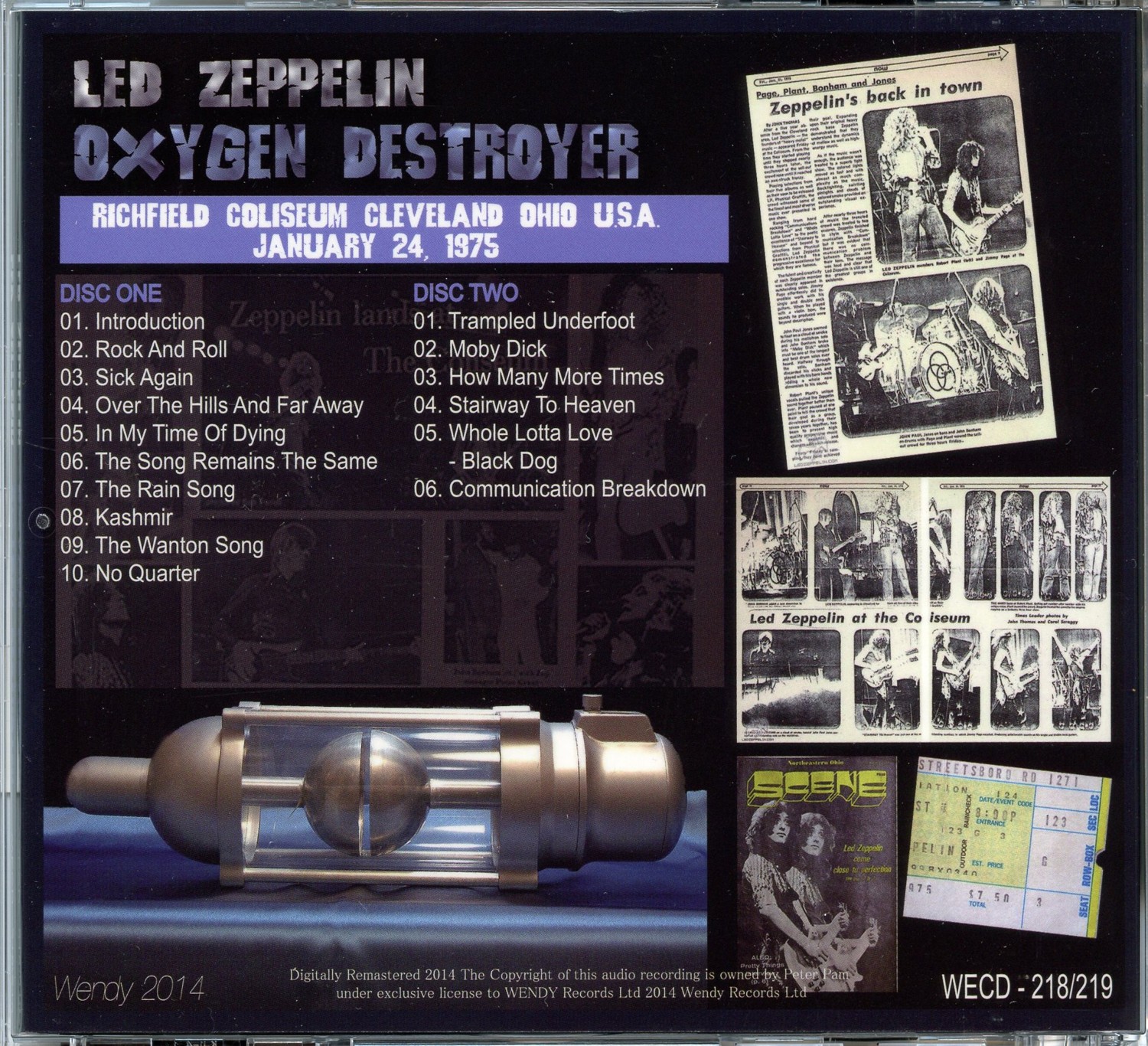 LED ZEPPELIN – Oxygen Destroyer ( 2 CD ) ( WENDY ) ( Richfield Coliseum, Cleveland, Ohio, USA, January 24th, 1975 )