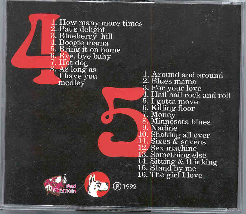1. Around and around 2. Blues mama . For your love . Hail hail rock and roll 5. Izotta move 6. Mling floor 7. Money 8. Minnesota blues 9. Nadine 10. Shaking all over 11. Sixes & sevens 12. Sex machine 13. Something else 14. Sitting & thinking 15. Stand byme 16. The girl I love