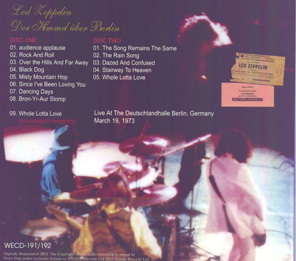 Led Zeppelin Wings of Desire 2 CD SET Wendy Live at The Deutschlandhalle Berlin Germany March 19 1973 Led Zeppelin Wings of Desire ( 2 CD SET ) ( Wendy ) ( Live at The Deutschlandhalle Berlin, Germany, March 19, 1973 )