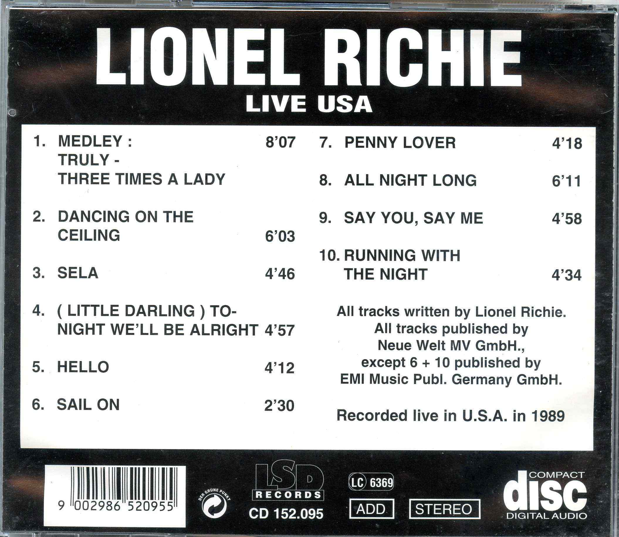 Lionel Richie Live USA LSD Records Recorded Live in the USA 1989 Lionel Richie- Live USA( LSD Records ) ( Recorded Live in the USA 1989 )