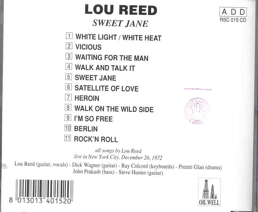 Lou Reed / Velvet Underground Sweet Jane Oil Well Lou Reed / Velvet Underground Sweet Jane ( Oil Well )