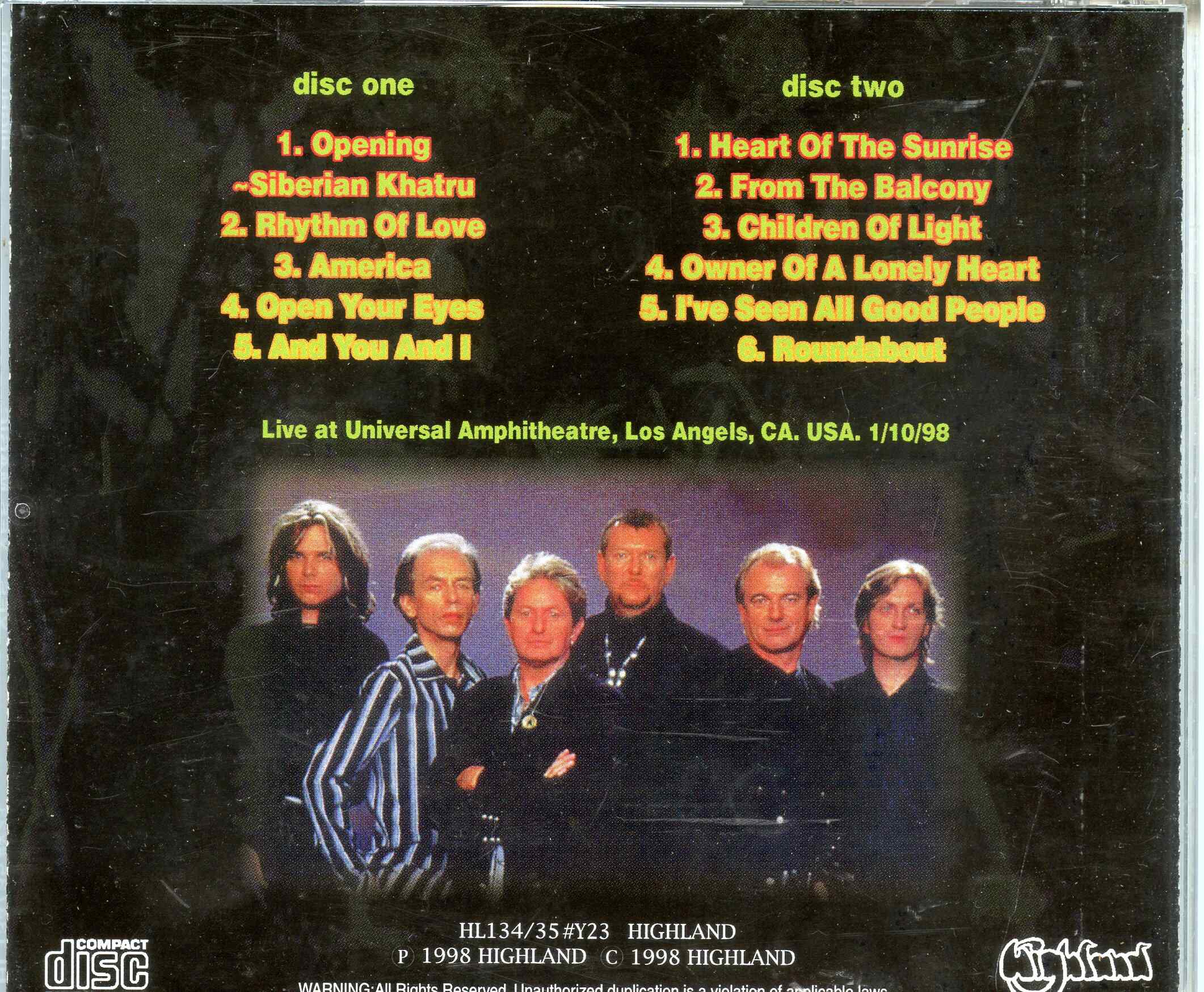 Yes Magic Highland 2 CD SET Jan 10th 1998 Broadcast of the Dec 7th 1997 Show at Los Angeles CA USA Yes Magic ( Highland ) ( 2 CD SET )( Jan 10th, 1998 Broadcast of the Dec 7th, 1997 Show at Los Angeles, CA, USA )
