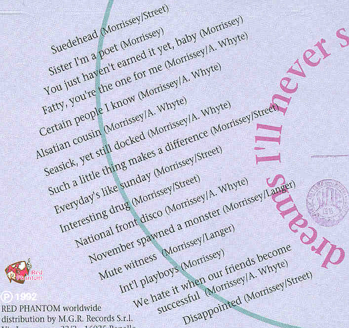 Morrissey – Dreams I’ll Never see ( Leysin Rock Fest , Suisse , July 9th , 1992 ) ( Great Dane )