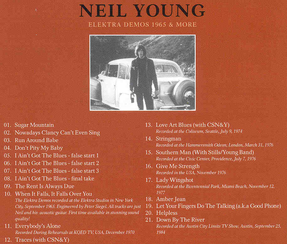 The Elektra Demos recorded at the Elektra Studios in New York City, September 1965. All tracks are just Neil and his acoustic guitar. First time available in stunning sound quality!