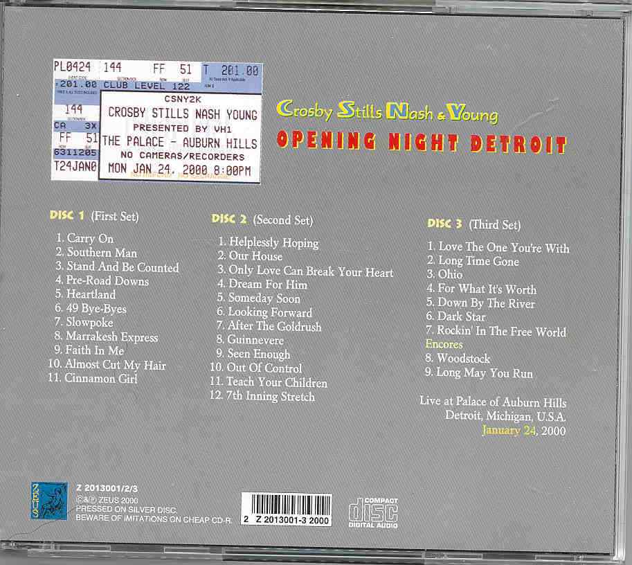 Neil Young / CSNY – Opening Night Detroit ( 3 CD SET ) ( The Palace , Auburn Hills , Detroit , USA , January 24th , 2000 )