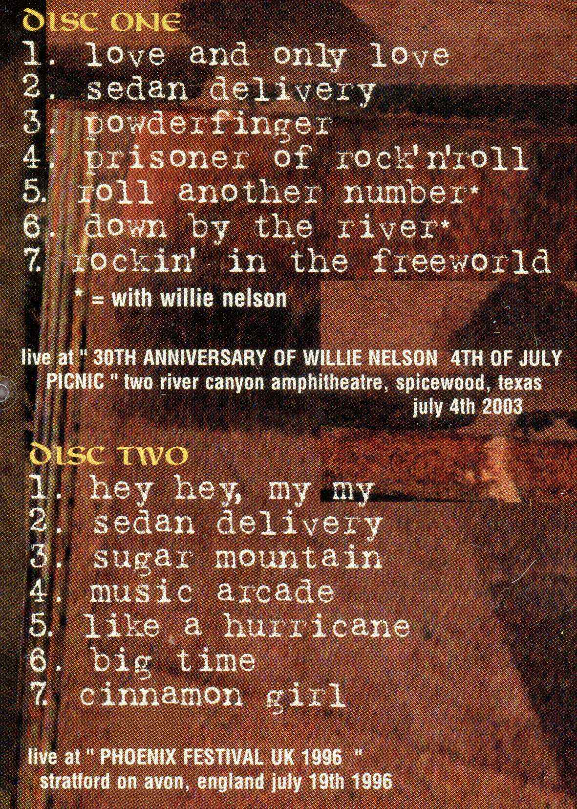 Neil Young Now And Then 2 CD SET Texas July 4th 2003 & Phoenix Festival UK July 19th 1996 Neil Young Now And Then( 2 CD SET ) ( Texas , July 4th , 2003 & Phoenix Festival , UK , July 19th , 1996 )